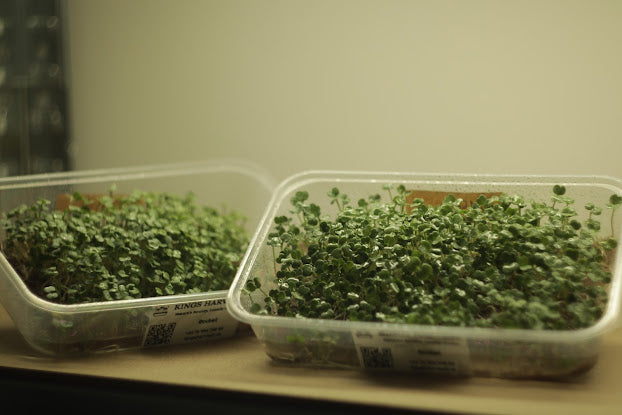 Our rocket microgreens, also known as arugula, are a flavourful superfood that pack a peppery punch. These oak-leaf-shaped greens are not only a taste sensation but also a nutritional powerhouse. Rich in folic acid, iron, and copper, they offer a concentrated source of essential minerals.